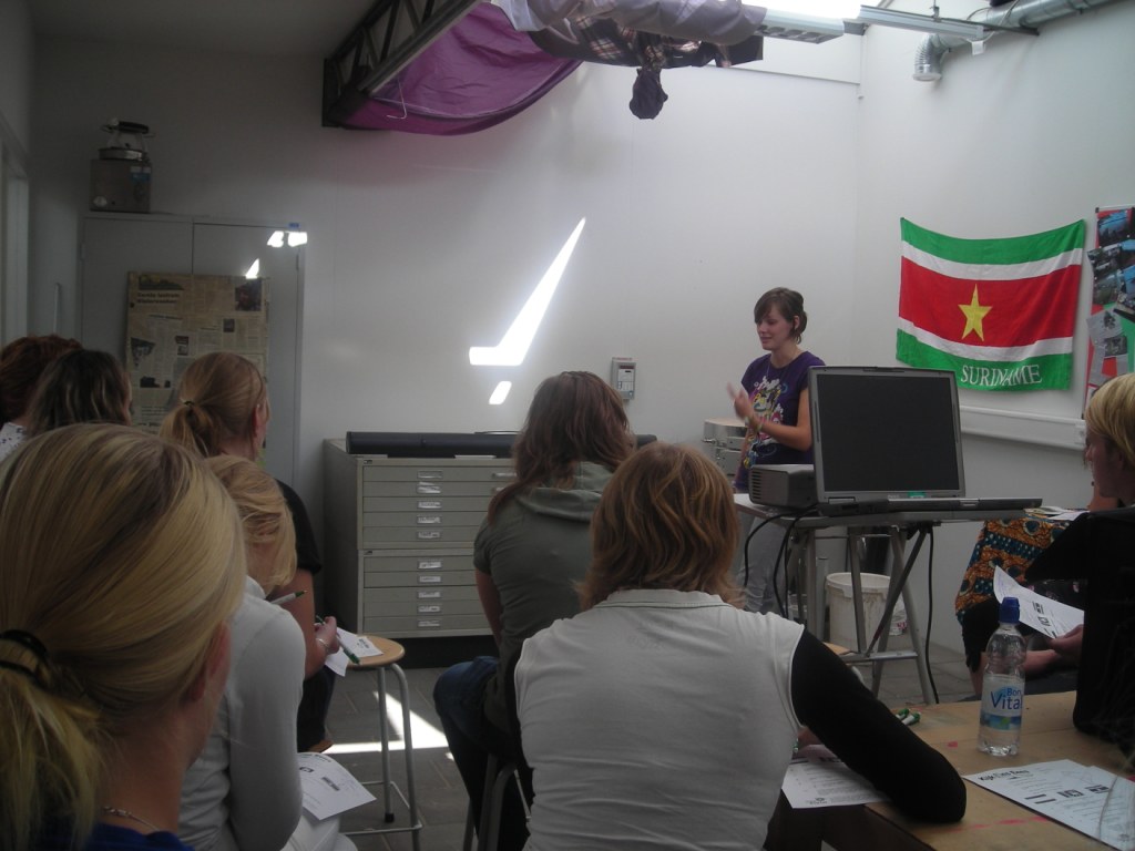 De jongeren van 'Kijk Ons Eens' zijn inmiddels al weer een week actief in Suriname! José verteld: "... We konden daarna veilig het pondje in. De fietsen werden er ook ingezet. Met het pondje vaarde we naar Commewijne. Toen we daar aan kwamen zagen we een bakkerij. Sommige van de groep hebben daar een broodje of drinken gekocht. We stapten op onze fiets voor een mooie route en de mooie natuur. Voordat we naar de open lucht museum gingen, hielden we eerst even pauze. Daar hebben we lekker onze benen even uitgestrekt. Een brandweerman wilde ons wat geschiedenis bijbrengen en kon de mooiste verhalen vertellen. Bij het open lucht museum kregen we een rondleiding. De gids vertelde hoe de gevaarlijkste gevangenen daar werden opgesloten. Er waren ook isoleercellen en diegene zat er 7 dagen in een donkere cel zonder brood en drinken. Dat overleefde niemand..." Meer lezen? Kijk op hun eigen weblog: kijkonseens.punt.nl. - top / home -SURINAAMSE OMGANGSVORMEN LEREN (juni 2008) Als onderdeel van de voorbereiding op hun verblijf in Suriname hebben de deelnemers van 'Kijk Ons Eens' deelgenomen aan een workshop over de in Suriname gebruikelijke omgangsvormen. Deze voorlichtingsworkshop werd gegeven door Surinaamse jongeren.