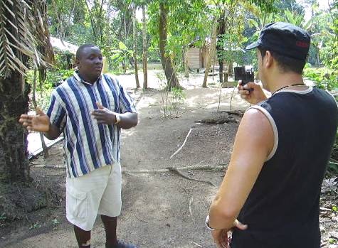 Deze zomer is opnieuw een groep Noord-Hollandse jongeren via Stichting Unu Pikin naar Suriname geweest. De 11 jongeren hebben in de sociale werkplaats gewerkt, twee sportmiddagen georganiseerd in Paramaribo en in Kajana, een dorp in het binnenland van Suriname, en een filmproject gedaan met jongeren van de werkplaats en kinderen van de lagere school OS II te Geyersvlijt. Op de foto hier boven filmt deelnemer Farid meneer Frits Dinge, tijdens een rondleiding door het dorp Kajana. Meneer Frits zet zich in voor de kinderen en jongeren van het dorp door het realiseren van onderwijsprojecten. Onze 'Kijk Ons Eens' jongeren hebben de kleuterschool opgeruimd en een sportmiddag georganiseerd. Naast deze activiteiten, hebben de jongeren gesprekken gevoerd om informatie in te winnen over andere projecten. - Met Peter-Derrek Hof, hoofd ontwikkelings-samenwerking van de Nederlandse Ambassade. - Met Hellen Kamperveen van de Jeugd Theaterschool On Stage, over de doelen van de school en de financiering uit fondsen. - Met Letitia Vriesde, die met eenvoudige middelen bezig is atletiek te bevorderen. - En met vrijwilligers van verschillende organisaties. Dankzij donaties uit Nederland kon de groep veel geschenken uitdelen, zoals spelmaterialen, pennen en schriften. De deelnemers hadden een voorraadje in hun bagage meegenomen, de rest van de spullen werd later met de container aangevoerd. Voor 'Kijk Ons Eens' heeft Unu Pikin geld gekregen van Xplore. Dit is een subsidieprogramma voor uitwisselingen en stages in ontwikkelingslanden, voor jongeren tussen de 12 en 30 jaar. Xplore wordt uitgevoerd door het Nederlands Jeugdinstituut / NJi in opdracht van het Ministerie van Buitenlandse zaken. Verder heeft KOE steun ontvangen van De Hypotheker Hoorn, Action Enkhuizen, Sokudo Gym, e.v.a. Iedereen hartelijk bedankt voor je bijdrage! - top / home -'KIJK ONS EENS' GEEFT PRESENTATIES (september 2008)