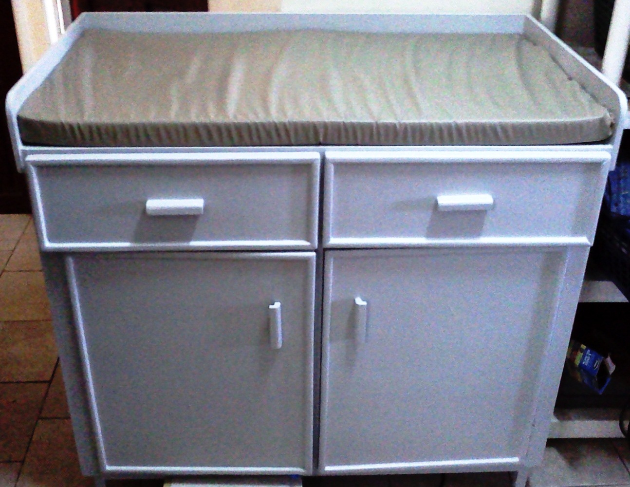 Commode met 2 deuren en 2 lades. Deze commodie kan naar wens worden afgewerkt en is in diverse kleuren leverbaar. Optioneel: een passend aankleedkussen.