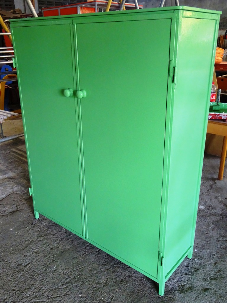 Afsluitbare kast met 2 deuren voorzien van legplanken. Veel opbergruimte. Verschillende kleurcombinaties mogelijk.