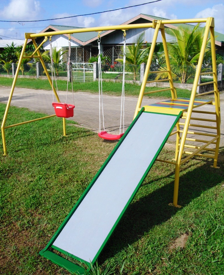 We maken verschillende speeltuinobjecten: wipplanken, schommels en glijbanen. Of een combinarie van schommels en glijplank, zoals deze metalen Anke. Meer zien: klik op de foto.